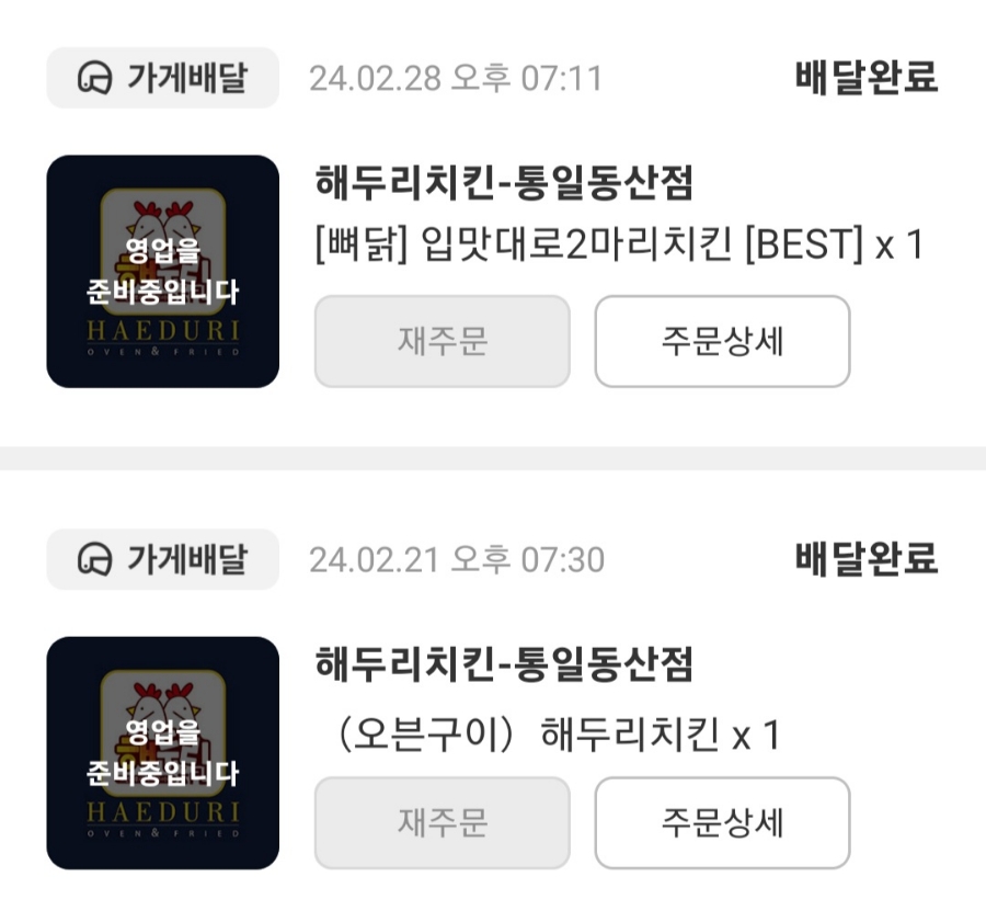 - 해두리치킨 통일동산점